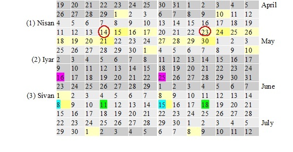 This says that Jesus experienced his “twelfth” birthday after the Passover, but before the number of “days” in the counting “having come completed.”  In the year 4 AD, the Passover “festival” began on April 23rd (14 Nisan) and ended on April 30th (21 Nisan).  Jesus’ Solar Return – thus his true birthday that he turned “twelve” – was on May 25, 004, at 8:36 am.  That was the 33rd “day” in the Counting of the Omer.  That is “day” five of the week five, or Hod of Hod.