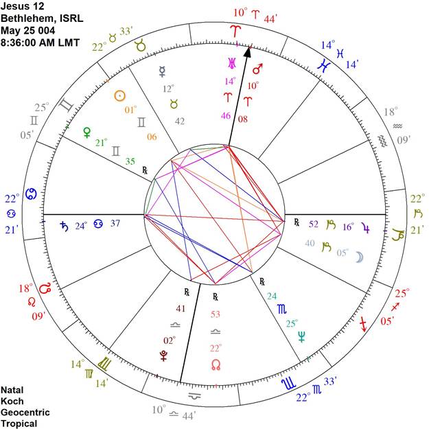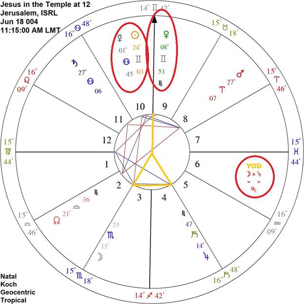 Here is the event chart for Jesus being found in the Temple teaching Judaic scholars on Wednesday, June 18, 004