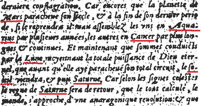 This literally translates to state, “, & not so much only of the time present, rather even as to there more substantial part of it future, from to set through published in writing, for that cause what them governments [regnes], philosophers [sectes], & beliefs in gods [religions] will be making changes in sort adverse ones, surely in it respect to him at hand diametrically, which even as I arrived at to recite this who in them to befall will be, those to rule [regne], company of one opinion [secte], worship of things held sacred [religion], &”.