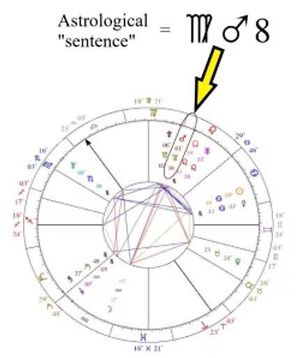For an astrologer a simple sentence would be like: “You have Mars in Virgo in your eighth house.” Every one of those words would be heard and understood as a sentence that said: “A planet is in an astrological sign, in something called a house.” Imagery would be based on that understanding. The same sentence spoken to another astrologer would then send the one hearing that statement deep into thought, reflecting on all the possibilities that one statement conveyed. In fact, the language of astrology would say that as three symbols, which would be drawn from a graphic picture of symbols – a natal chart.