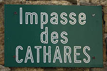 This is a road sign in Pieusse, Aude road sign in Minerve Tourist branding in the Aude Catharism is often said to have been completely eradicated by the end of the fourteenth century. Yet there are more than a few vestiges even today, apart from the enduring memory of Cathar “martyrdom” and the ruins of the famous “Cathar castles”, including the Château of Montségur ( The Name in Occitan. Click here to find out more about occitan. Montsegùr). There are even Cathars alive today, or at least people claiming to be modern Cathars. There is a flourishing, if largely superficial, Cathar tourist industry in the Languedoc, and especially in the Aude département. As we see the eight-hundredth anniversary of important events, more and more memorials are springing up on the sites of massacres. There is also an increasing community of historians and other academics engaged in serious Cathar studies. Interestingly, to date, the deeper scholars have dug, the more they have vindicated Cathar claims to represent a survival of the Earliest Christian Church.