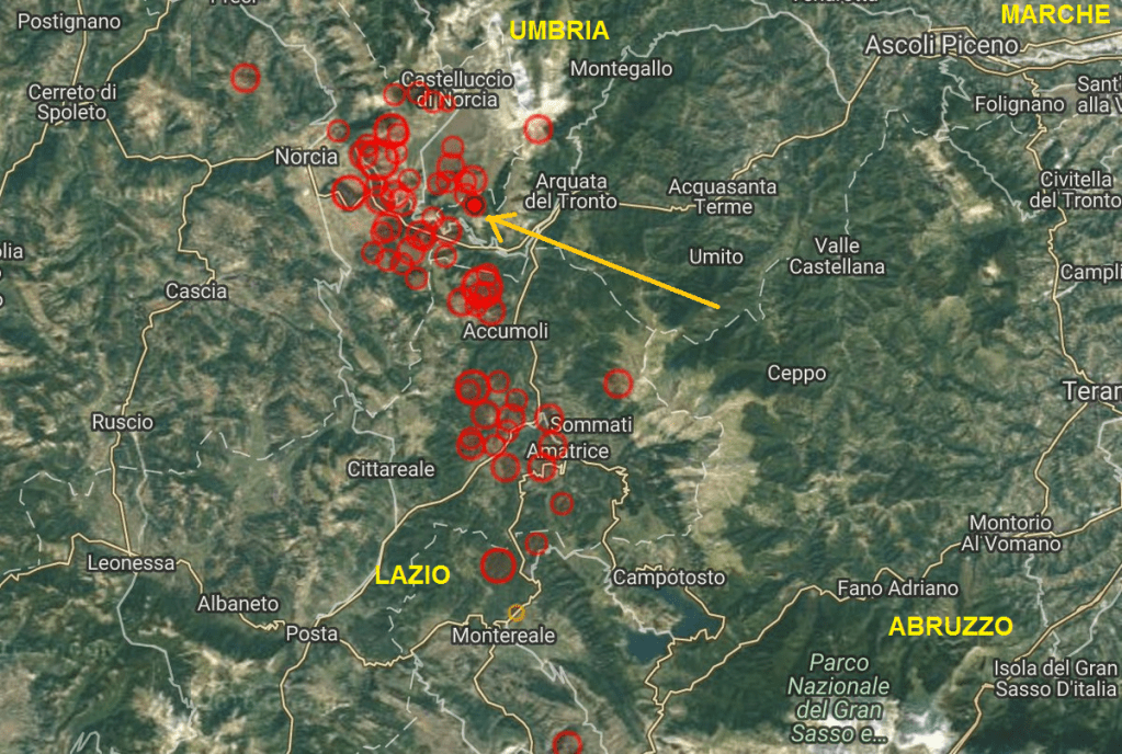 In the main theme of quatrain I-93, we find written: “Land Italian near to the mountains will tremble.” This certainly would fit the scenario of the Umbrian earthquakes, as they are in the land where the Umbri people lived – an ancient “Italic “ tribe. The town of Amatrice is in the Lazio region, which was the land of the ancient Latins. The aftershocks also shook in the Marche and Ambruzzo regions, where other ancient Italic tribes lived. Those who lived in places situated in the Umbrian valley would be considered “near to the mountains,” as opposed to being atop the mountains.  The Apennines create that land that is the peninsula where Italic peoples live. If the act of “trembling” was caused by an earthquake, this main theme would match the recent events. However, line two would indicate the source of the “earth-shaking.”