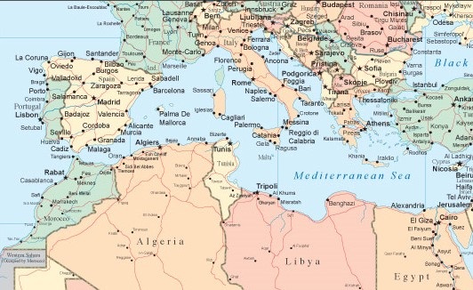 Maybe if I wrote a map with the names of the countries of North Africa a pattern would emerge.  Pretend the Atlantic Ocean (you do know where that is, right?) is on the far left hand side of the page.  Okay?  Let’s try it.