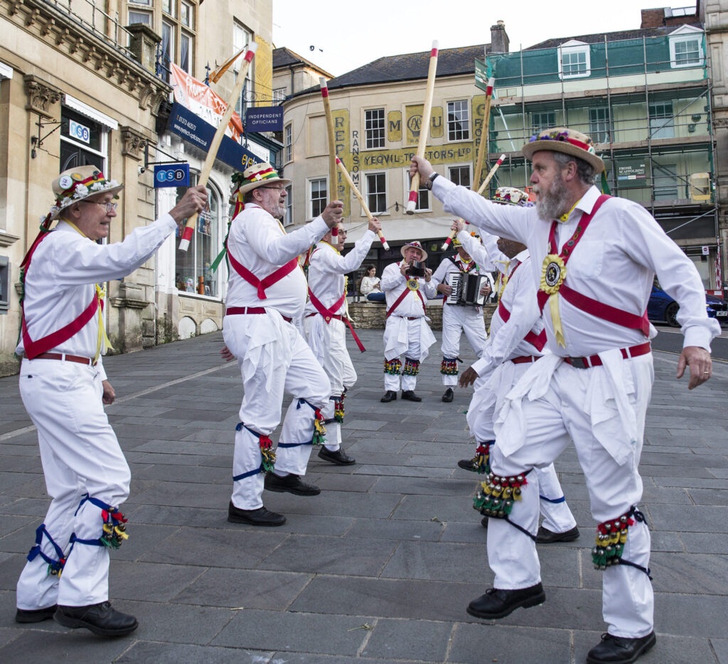 One popular form of this dance involves swords, but a kind designed where each sword used is to be held by handles on both ends, in the hands of two opposing ‘sides’ of dancers. Some use canes which they beat rhythmically on poles lying on the ground, with drums being another part of the music accompanying the dance. This can make “Morris dance” be a comparative dance to the Russian Squat dance. That dance in old times was considered a ‘fight dance.’ People still today make wagers on who will win a dance-off of squatting.